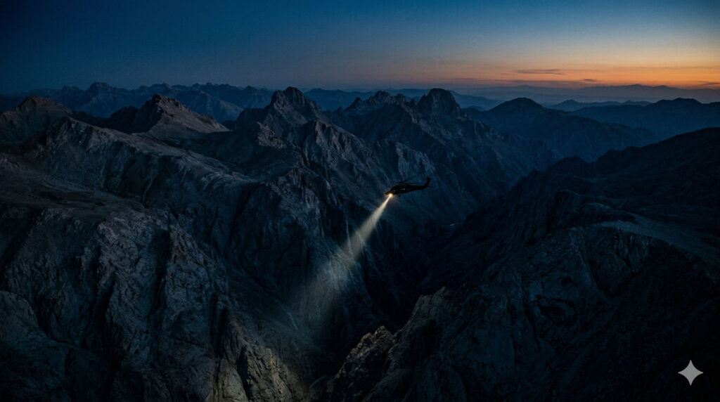 Irgendwo in den schroffen, unzugänglichen Gebirgszügen des Nahen Ostens sucht in eben diesen Stunden ein Rettungstrupp nach einem vermissten amerikanischen Besatzungsmitglied. Eine F-15 der US-Luftwaffe wurde vom Himmel geholt. Der Copilot konnte gerettet werden, das Schicksal des anderen Fliegers bleibt im Ungewissen – ob er tot ist, sich versteckt hält oder gefangen genommen wurde, ist völlig unklar. Während das Überleben eines amerikanischen Soldaten am seidenen Faden hängt und die globale Sicherheitsarchitektur Risse bekommt, schließt der Oberbefehlshaber die Türen zur Öffentlichkeit. Es ist eine Flucht vor der Realität, die das Ausmaß des strategischen Debakels nur noch sichtbarer macht.