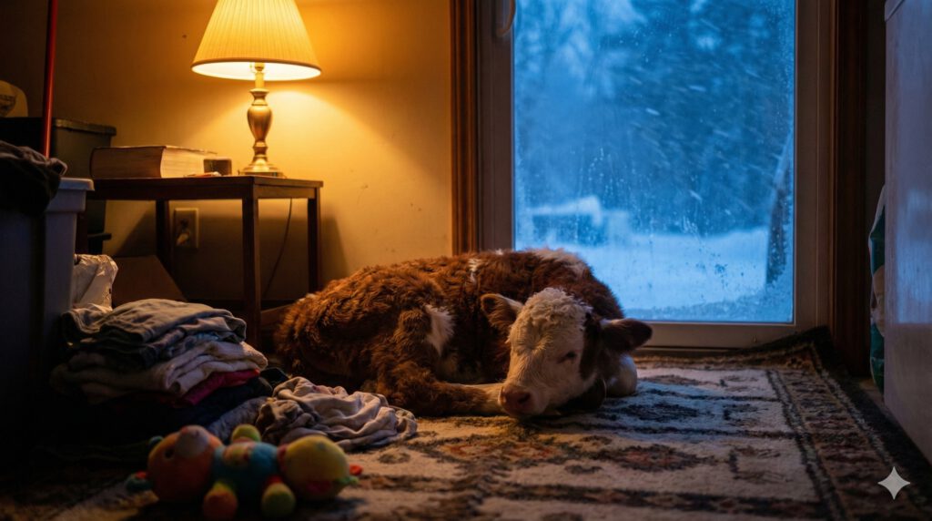 Was folgte, war eine Szene von fast sakraler Geborgenheit. Das Kälbchen, getauft auf den Namen Sally, lag auf dem Sofa, eingekuschelt zwischen den Kleinkindern Gregory und Charlee Jo. Die zweijährige Charlee Jo sang dem Kalb „Twinkle, Twinkle, Little Star“ vor. Für die Familie, die erst eine Woche zuvor den Großvater beerdigt hatte, wurde das Kalb im Wohnzimmer zu einem Moment des Lichts in einer Zeit der Trauer. Die Grenzen zwischen „Nutzvieh“ und „Familie“ lösten sich in der Notwendigkeit der Wärme auf. Und das Happy End ist vollständig: Die Mutterkuh nahm ihr Kalb am nächsten Morgen wieder an, sobald sie es muhen hörte. Doch Sally wird nicht verkauft werden; sie hat sich ihren Status als „permanente Bewohnerin“ auf dem Sofa und im Herzen der Familie gesichert.
